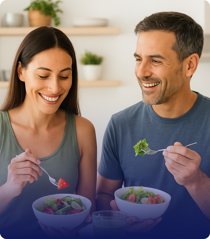 Una alimentación equilibrada y sostenible, basada en tus objetivos, estilo de vida y preferencias. No se trata de contar calorías ni seguir dietas extremas, sino de aprender a comer bien y sin culpa.